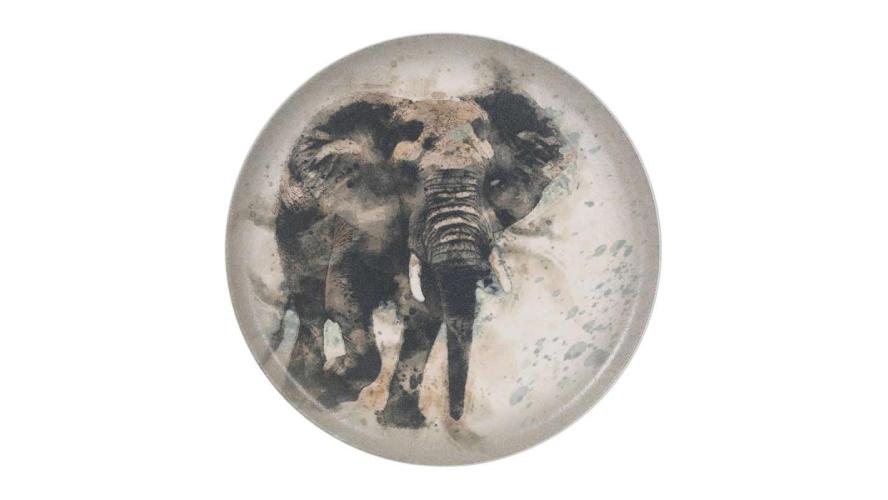 Особенное внимание привлекает блюдо с изображением слона, который шагает по пустыням саванны.