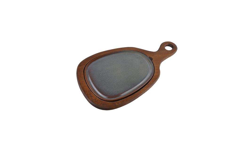 Блюдо для подачи 24,5*20,5 см. h=2,5 см. с ручкой на дерев. подставке, фарфор серия Глоир Bonna /1/6/