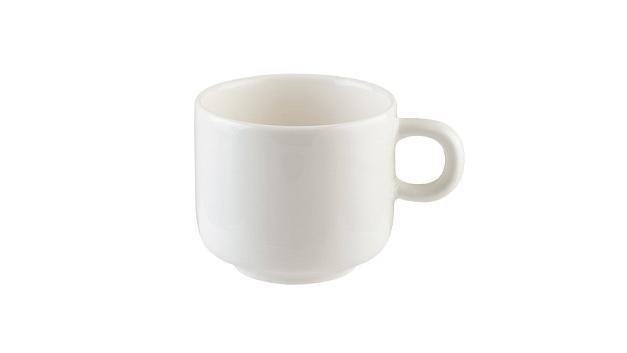 Чашка кофейная белого цвета со сливочным оттенком.