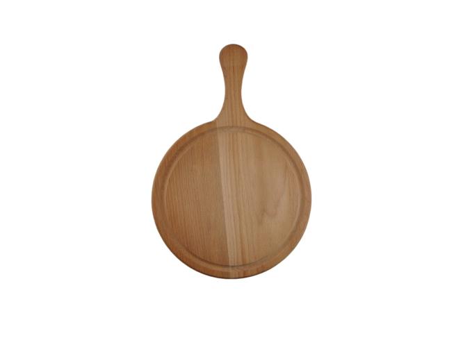 Доска для подачи круг. d=260*20 мм. с желобком и ручкой, бук /1/