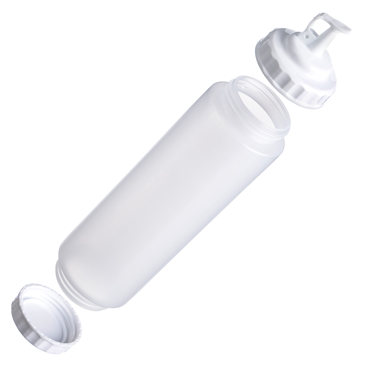 Емкость для соуса 1000 мл выполнена из прочного пищевого пластика и предназначена для профессионального использования в сегменте HoReCa. Конструкция с двумя откручивающимися крышками обеспечивает удобство наполнения, использования и ухода. Дозирующий носик с крышкой-клапаном предотвращает проливы и защищает содержимое от загрязнений. Белый цвет служит маркировкой для майонеза и других белых соусов. Прозрачный корпус облегчает визуальный контроль содержимого. Подходит для мытья в посудомоечной машине.