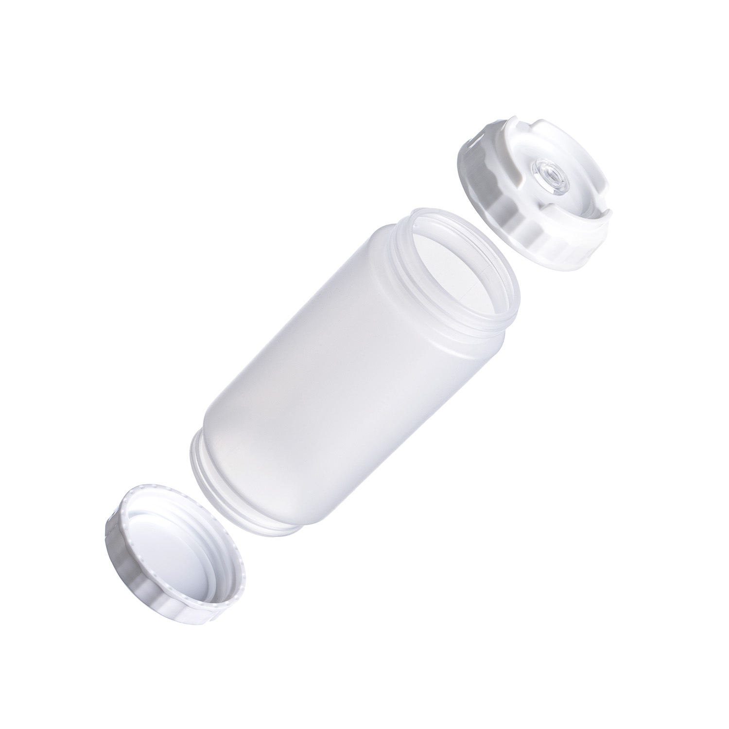 Емкость для соуса 500 мл. d=70 мм. h=166 мм. с 2 крышками, с силик. носик. широкая прозрачная, крышки белые GP /1/96/ ВДОХНОВЕНИЕ