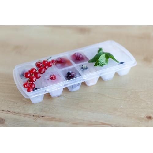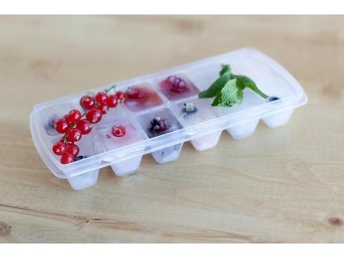 Форма для льда имеет 12 одинаковых ячеек, которые после наливания воды закрываются эластичной крышкой: она предотвращает протекание жидкости и попадание внутрь посторонних запахов.
