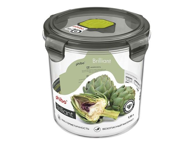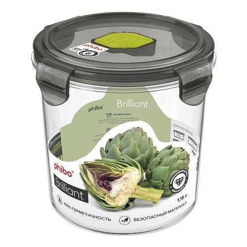 Контейнер для продуктов круглый 1,15 л. d=12,5 см. h=12 см. герметич. с клапаном "Бриллиант"/1/12/