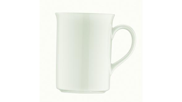 Кружка белого цвета со сливочным оттенком.