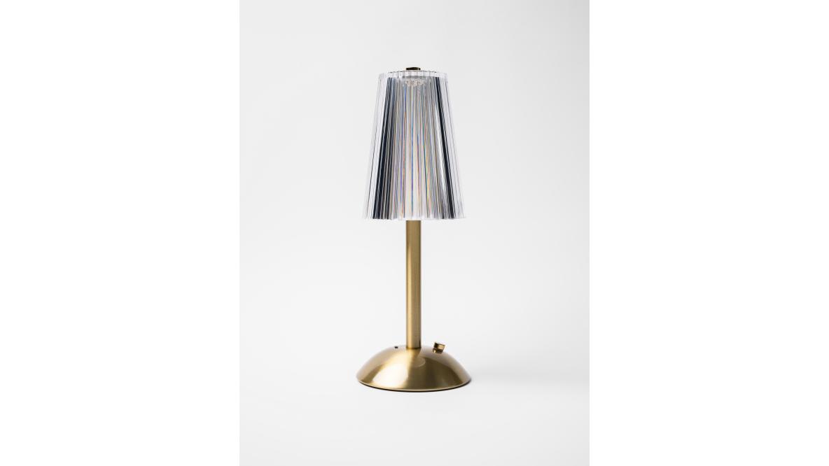 Лампа настольная беспроводная d=11 см. h=29,5 см. 3 цвета (телпый/натуральный/белый), 1 режим яркости, нерж./акрил, золотая LED CRYSTAL MGline /1/20/