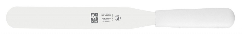 Лопатка 24 см. прямая раб. часть 14*2,7 см. нерж. узкая с пластик. ручкой, белая Icel /1/6/