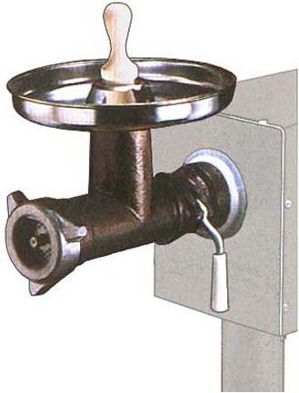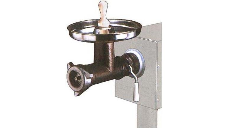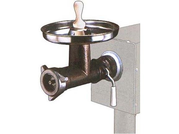 Изделие оснащено загрузочной тарелкой, толкачом, хвостовиком и спиральными ребрами, удерживающими от проворачивания мяса.
