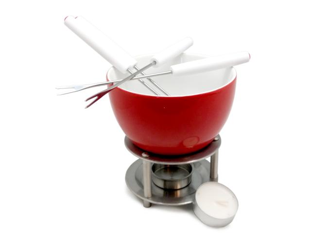 string(499) "Фондю изготовлено из фарфора, белого цвета внутри и красного снаружи,