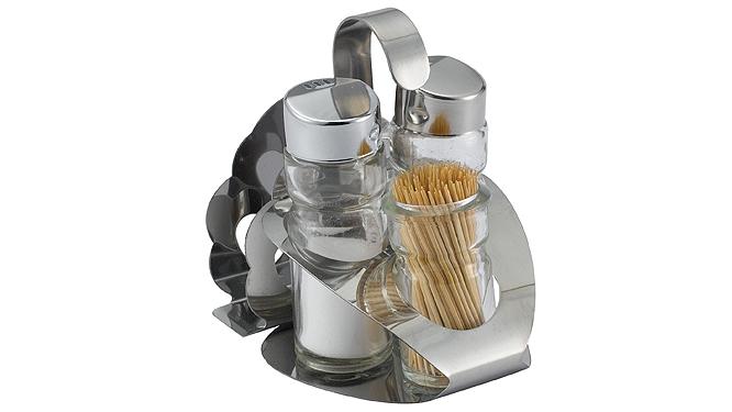 string(262) "Набор предметов для специй с салфетницей, в который входит солонка и перечница + стаканчик для зубочисток.