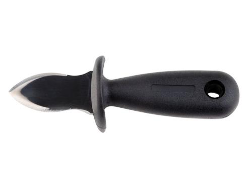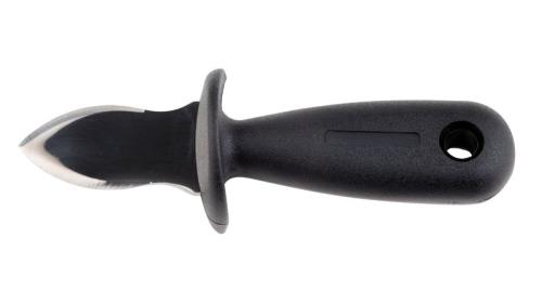 Рукоять ножа с защитой пальцев выполнена из ударопрочного пластика с нескользящей поверхностью и широкой задней частью, что позволяет крепко и безопасно держать нож при открывании моллюска.