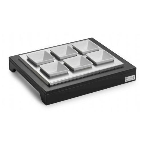 Подставка 38*32*5,5 см. с 6-ю салатниками, дерево венге+нерж. с охлажд. Pinti /1/ Под заказ