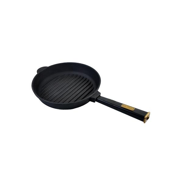Сковорода-гриль d=26 см. h=4 см. чугун. рифлен. с дерев. ручкой FM (индукция) /1/6/