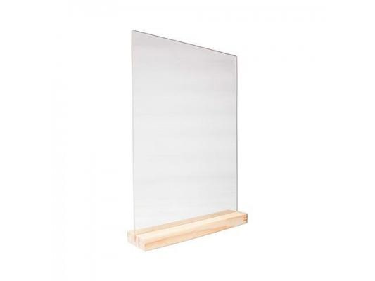 Табличка 150*210 мм. А5 пласт. вертикал. прозрач. тейбл тент на дерев. подставке /1/5/25/