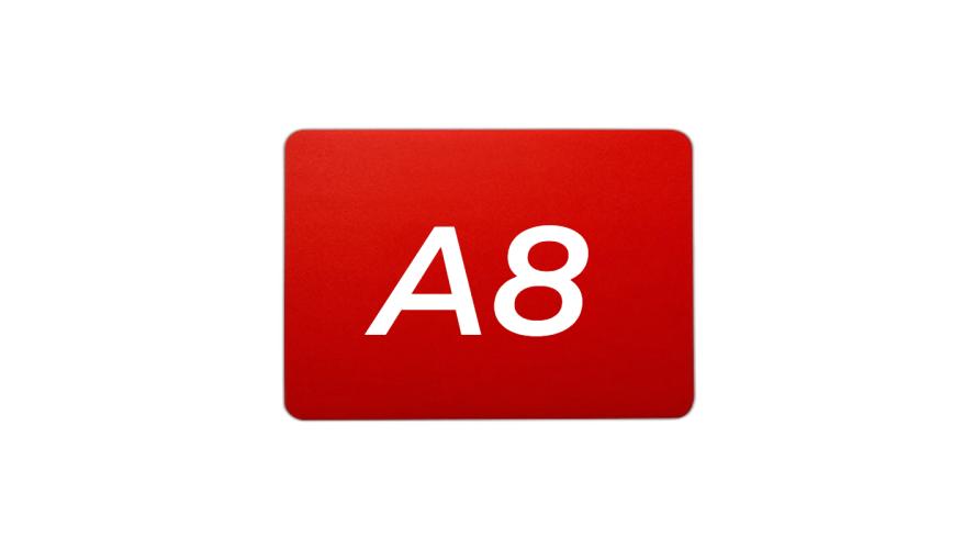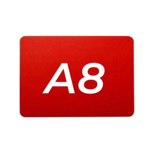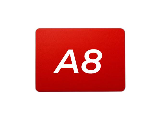 Меловой ценник с двусторонней шероховатостью красный формат А8 изготовлен из полипропилена 0.5 мм. (скругленные углы)
