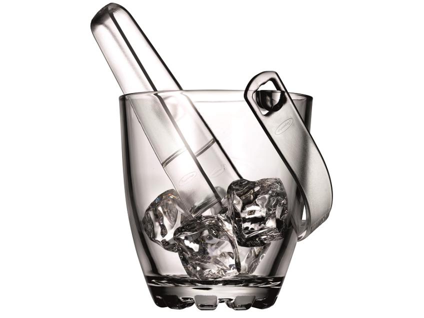 В комплекте есть пластиковые щипцы для порционной подачи льда. Высота ведра всего 13 см, оно не займет много места на столе.